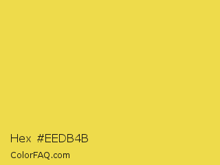 Hex #eedb4b Color is a light yellow color and the nearest color is Minion Yellow #f5e050. Hex code #eedb4b and RGB value is rgb(238,219,75). In RGB color space, this color is composed of 93% red, 86% green, 29% blue, In CMYK color space, this color is composed of 0% cyan, 8% magenta, 68% yellow , 7% black , In HSL color space, this color has a hue angle of 53° , 83% saturation and 61% lightness.