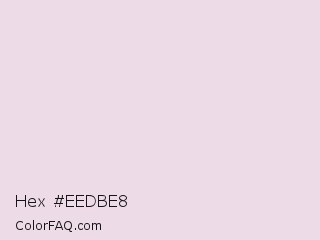 Hex #eedbe8 Color is a very light magenta color and the nearest color is Prim #f0e2ec. Hex code #eedbe8 and RGB value is rgb(238,219,232). In RGB color space, this color is composed of 93% red, 86% green, 91% blue, In CMYK color space, this color is composed of 0% cyan, 8% magenta, 3% yellow , 7% black , In HSL color space, this color has a hue angle of 319° , 36% saturation and 90% lightness.