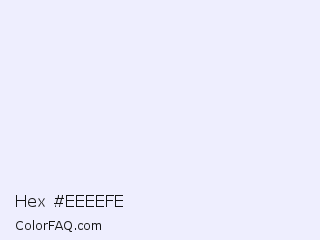 Hex #eeeefe Color is a almost white blue color and the nearest color is Selago #f0eefd. Hex code #eeeefe and RGB value is rgb(238,238,254). In RGB color space, this color is composed of 93% red, 93% green, 100% blue, In CMYK color space, this color is composed of 6% cyan, 6% magenta, 0% yellow , 0% black , In HSL color space, this color has a hue angle of 240° , 89% saturation and 96% lightness.