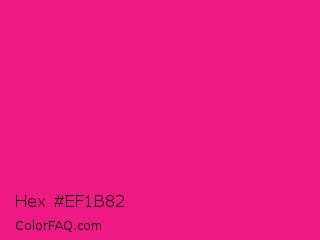 Hex #ef1b82 Color is a normal rose color and the nearest color is Barbie Pink #e0218a. Hex code #ef1b82 and RGB value is rgb(239,27,130). In RGB color space, this color is composed of 94% red, 11% green, 51% blue, In CMYK color space, this color is composed of 0% cyan, 89% magenta, 46% yellow , 6% black , In HSL color space, this color has a hue angle of 331° , 87% saturation and 52% lightness.