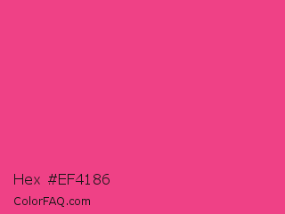 Hex #ef4186 Color is a normal rose color and the nearest color is Cerise Pink #ec3b83. Hex code #ef4186 and RGB value is rgb(239,65,134). In RGB color space, this color is composed of 94% red, 25% green, 53% blue, In CMYK color space, this color is composed of 0% cyan, 73% magenta, 44% yellow , 6% black , In HSL color space, this color has a hue angle of 336° , 84% saturation and 60% lightness.