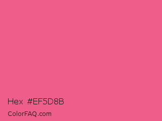 Hex #ef5d8b Color is a light rose color and the nearest color is Strawberry #fc5a8d. Hex code #ef5d8b and RGB value is rgb(239,93,139). In RGB color space, this color is composed of 94% red, 36% green, 55% blue, In CMYK color space, this color is composed of 0% cyan, 61% magenta, 42% yellow , 6% black , In HSL color space, this color has a hue angle of 341° , 82% saturation and 65% lightness.