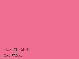 Hex #ef6e92 Color is a light rose color and the nearest color is Light Crimson #f56991. Hex code #ef6e92 and RGB value is rgb(239,110,146). In RGB color space, this color is composed of 94% red, 43% green, 57% blue, In CMYK color space, this color is composed of 0% cyan, 54% magenta, 39% yellow , 6% black , In HSL color space, this color has a hue angle of 343° , 80% saturation and 68% lightness.