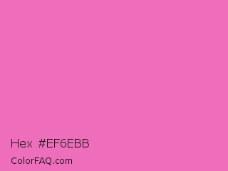 Hex #ef6ebb Color is a light magenta color and the nearest color is Hot Pink #ff69b4. Hex code #ef6ebb and RGB value is rgb(239,110,187). In RGB color space, this color is composed of 94% red, 43% green, 73% blue, In CMYK color space, this color is composed of 0% cyan, 54% magenta, 22% yellow , 6% black , In HSL color space, this color has a hue angle of 324° , 80% saturation and 68% lightness.