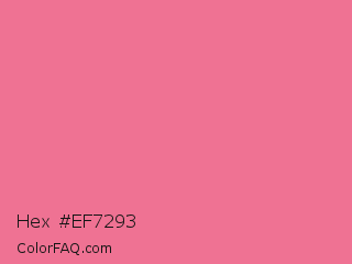 Hex #ef7293 Color is a light rose color and the nearest color is Light Crimson #f56991. Hex code #ef7293 and RGB value is rgb(239,114,147). In RGB color space, this color is composed of 94% red, 45% green, 58% blue, In CMYK color space, this color is composed of 0% cyan, 52% magenta, 38% yellow , 6% black , In HSL color space, this color has a hue angle of 344° , 80% saturation and 69% lightness.