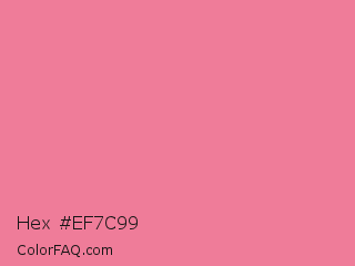 Hex #ef7c99 Color is a light red color and the nearest color is Bright Blush #e47698. Hex code #ef7c99 and RGB value is rgb(239,124,153). In RGB color space, this color is composed of 94% red, 49% green, 60% blue, In CMYK color space, this color is composed of 0% cyan, 48% magenta, 36% yellow , 6% black , In HSL color space, this color has a hue angle of 345° , 78% saturation and 71% lightness.
