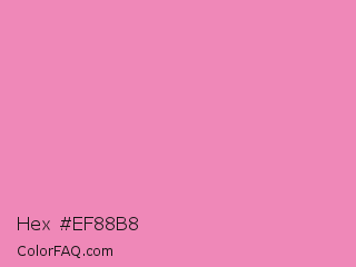 Hex #ef88b8 Color is a light rose color and the nearest color is Persian Pink #f77fbe. Hex code #ef88b8 and RGB value is rgb(239,136,184). In RGB color space, this color is composed of 94% red, 53% green, 72% blue, In CMYK color space, this color is composed of 0% cyan, 43% magenta, 23% yellow , 6% black , In HSL color space, this color has a hue angle of 332° , 76% saturation and 74% lightness.