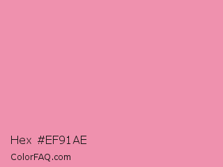 Hex #ef91ae Color is a light rose color and the nearest color is Mauvelous #f091a9. Hex code #ef91ae and RGB value is rgb(239,145,174). In RGB color space, this color is composed of 94% red, 57% green, 68% blue, In CMYK color space, this color is composed of 0% cyan, 39% magenta, 27% yellow , 6% black , In HSL color space, this color has a hue angle of 341° , 75% saturation and 75% lightness.