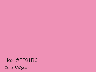 Hex #ef91b6 Color is a light rose color and the nearest color is Amaranth Pink #f19cbb. Hex code #ef91b6 and RGB value is rgb(239,145,182). In RGB color space, this color is composed of 94% red, 57% green, 71% blue, In CMYK color space, this color is composed of 0% cyan, 39% magenta, 24% yellow , 6% black , In HSL color space, this color has a hue angle of 336° , 75% saturation and 75% lightness.