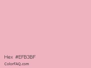 Hex #efb3bf Color is a very light red color and the nearest color is Nadeshiko Pink #f6adc6. Hex code #efb3bf and RGB value is rgb(239,179,191). In RGB color space, this color is composed of 94% red, 70% green, 75% blue, In CMYK color space, this color is composed of 0% cyan, 25% magenta, 20% yellow , 6% black , In HSL color space, this color has a hue angle of 348° , 65% saturation and 82% lightness.