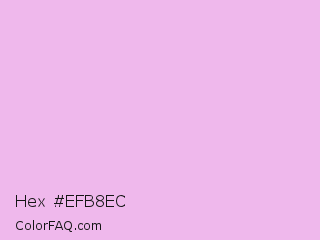 Hex #efb8ec Color is a very light magenta color and the nearest color is French Lilac #ecc7ee. Hex code #efb8ec and RGB value is rgb(239,184,236). In RGB color space, this color is composed of 94% red, 72% green, 93% blue, In CMYK color space, this color is composed of 0% cyan, 23% magenta, 1% yellow , 6% black , In HSL color space, this color has a hue angle of 303° , 63% saturation and 83% lightness.