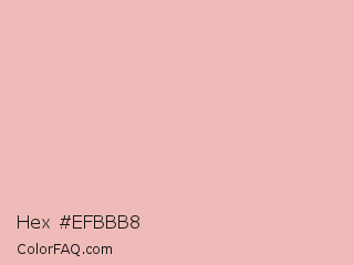 Hex #efbbb8 Color is a very light red color and the nearest color is Beauty Bush #eec1be. Hex code #efbbb8 and RGB value is rgb(239,187,184). In RGB color space, this color is composed of 94% red, 73% green, 72% blue, In CMYK color space, this color is composed of 0% cyan, 22% magenta, 23% yellow , 6% black , In HSL color space, this color has a hue angle of 3° , 63% saturation and 83% lightness.