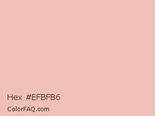 Hex #efbfb6 Color is a very light red color and the nearest color is Mandys Pink #f2c3b2. Hex code #efbfb6 and RGB value is rgb(239,191,182). In RGB color space, this color is composed of 94% red, 75% green, 71% blue, In CMYK color space, this color is composed of 0% cyan, 20% magenta, 24% yellow , 6% black , In HSL color space, this color has a hue angle of 9° , 64% saturation and 83% lightness.