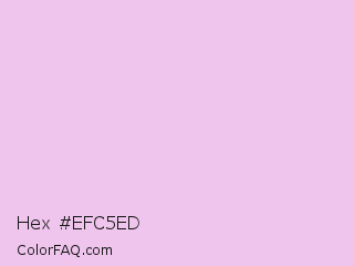 Hex #efc5ed Color is a very light magenta color and the nearest color is French Lilac #ecc7ee. Hex code #efc5ed and RGB value is rgb(239,197,237). In RGB color space, this color is composed of 94% red, 77% green, 93% blue, In CMYK color space, this color is composed of 0% cyan, 18% magenta, 1% yellow , 6% black , In HSL color space, this color has a hue angle of 303° , 57% saturation and 85% lightness.