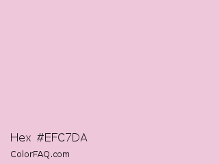 Hex #efc7da Color is a very light rose color and the nearest color is Azalea #f7c8da. Hex code #efc7da and RGB value is rgb(239,199,218). In RGB color space, this color is composed of 94% red, 78% green, 85% blue, In CMYK color space, this color is composed of 0% cyan, 17% magenta, 9% yellow , 6% black , In HSL color space, this color has a hue angle of 332° , 56% saturation and 86% lightness.