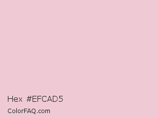 Hex #efcad5 Color is a very light rose color and the nearest color is Queen Pink #e8ccd7. Hex code #efcad5 and RGB value is rgb(239,202,213). In RGB color space, this color is composed of 94% red, 79% green, 84% blue, In CMYK color space, this color is composed of 0% cyan, 15% magenta, 11% yellow , 6% black , In HSL color space, this color has a hue angle of 342° , 54% saturation and 86% lightness.