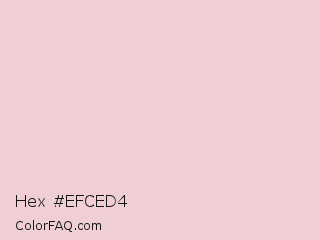 Hex #efced4 Color is a very light red color and the nearest color is Queen Pink #e8ccd7. Hex code #efced4 and RGB value is rgb(239,206,212). In RGB color space, this color is composed of 94% red, 81% green, 83% blue, In CMYK color space, this color is composed of 0% cyan, 14% magenta, 11% yellow , 6% black , In HSL color space, this color has a hue angle of 349° , 51% saturation and 87% lightness.