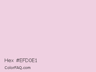 Hex #efd0e1 Color is a very light magenta color and the nearest color is Vanilla Ice #f3d9df. Hex code #efd0e1 and RGB value is rgb(239,208,225). In RGB color space, this color is composed of 94% red, 82% green, 88% blue, In CMYK color space, this color is composed of 0% cyan, 13% magenta, 6% yellow , 6% black , In HSL color space, this color has a hue angle of 327° , 49% saturation and 88% lightness.
