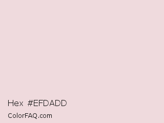 Hex #efdadd Color is a very light red color and the nearest color is Vanilla Ice #f3d9df. Hex code #efdadd and RGB value is rgb(239,218,221). In RGB color space, this color is composed of 94% red, 85% green, 87% blue, In CMYK color space, this color is composed of 0% cyan, 9% magenta, 8% yellow , 6% black , In HSL color space, this color has a hue angle of 351° , 40% saturation and 90% lightness.