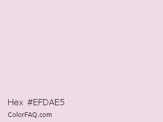 Hex #efdae5 Color is a very light rose color and the nearest color is Vanilla Ice #f3d9df. Hex code #efdae5 and RGB value is rgb(239,218,229). In RGB color space, this color is composed of 94% red, 85% green, 90% blue, In CMYK color space, this color is composed of 0% cyan, 9% magenta, 4% yellow , 6% black , In HSL color space, this color has a hue angle of 329° , 40% saturation and 90% lightness.