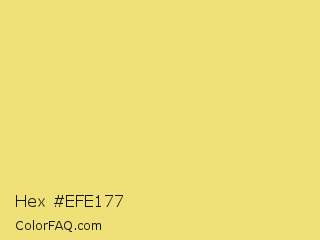 Hex #efe177 Color is a light yellow color and the nearest color is Golden Sand #f0db7d. Hex code #efe177 and RGB value is rgb(239,225,119). In RGB color space, this color is composed of 94% red, 88% green, 47% blue, In CMYK color space, this color is composed of 0% cyan, 6% magenta, 50% yellow , 6% black , In HSL color space, this color has a hue angle of 53° , 79% saturation and 70% lightness.