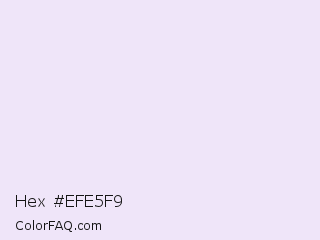 Hex #efe5f9 Color is a very light violet color and the nearest color is Blue Chalk #f1e9ff. Hex code #efe5f9 and RGB value is rgb(239,229,249). In RGB color space, this color is composed of 94% red, 90% green, 98% blue, In CMYK color space, this color is composed of 4% cyan, 8% magenta, 0% yellow , 2% black , In HSL color space, this color has a hue angle of 270° , 63% saturation and 94% lightness.