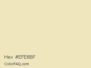 Hex #efe8bf Color is a very light yellow color and the nearest color is Fall Green #ecebbd. Hex code #efe8bf and RGB value is rgb(239,232,191). In RGB color space, this color is composed of 94% red, 91% green, 75% blue, In CMYK color space, this color is composed of 0% cyan, 3% magenta, 20% yellow , 6% black , In HSL color space, this color has a hue angle of 51° , 60% saturation and 84% lightness.