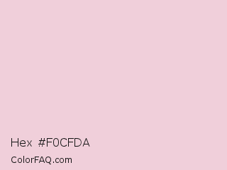 Hex #f0cfda Color is a very light rose color and the nearest color is Queen Pink #e8ccd7. Hex code #f0cfda and RGB value is rgb(240,207,218). In RGB color space, this color is composed of 94% red, 81% green, 85% blue, In CMYK color space, this color is composed of 0% cyan, 14% magenta, 9% yellow , 6% black , In HSL color space, this color has a hue angle of 340° , 52% saturation and 88% lightness.