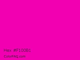 Hex #f100b1 Color is a normal magenta color and the nearest color is Hollywood Cerise #f400a1. Hex code #f100b1 and RGB value is rgb(241,0,177). In RGB color space, this color is composed of 95% red, 0% green, 69% blue, In CMYK color space, this color is composed of 0% cyan, 100% magenta, 27% yellow , 5% black , In HSL color space, this color has a hue angle of 316° , 100% saturation and 47% lightness.