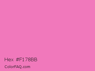 Hex #f178bb Color is a light magenta color and the nearest color is Persian Pink #f77fbe. Hex code #f178bb and RGB value is rgb(241,120,187). In RGB color space, this color is composed of 95% red, 47% green, 73% blue, In CMYK color space, this color is composed of 0% cyan, 50% magenta, 22% yellow , 5% black , In HSL color space, this color has a hue angle of 327° , 81% saturation and 71% lightness.
