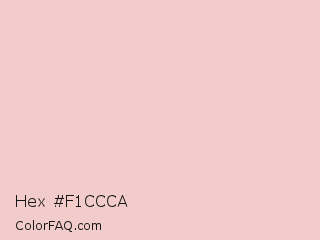 Hex #f1ccca Color is a very light red color and the nearest color is Oyster Pink #e9cecd. Hex code #f1ccca and RGB value is rgb(241,204,202). In RGB color space, this color is composed of 95% red, 80% green, 79% blue, In CMYK color space, this color is composed of 0% cyan, 15% magenta, 16% yellow , 5% black , In HSL color space, this color has a hue angle of 3° , 58% saturation and 87% lightness.