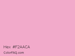 Hex #f2aaca Color is a very light rose color and the nearest color is Nadeshiko Pink #f6adc6. Hex code #f2aaca and RGB value is rgb(242,170,202). In RGB color space, this color is composed of 95% red, 67% green, 79% blue, In CMYK color space, this color is composed of 0% cyan, 30% magenta, 17% yellow , 5% black , In HSL color space, this color has a hue angle of 333° , 73% saturation and 81% lightness.
