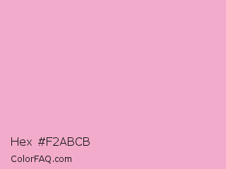 Hex #f2abcb Color is a very light rose color and the nearest color is Nadeshiko Pink #f6adc6. Hex code #f2abcb and RGB value is rgb(242,171,203). In RGB color space, this color is composed of 95% red, 67% green, 80% blue, In CMYK color space, this color is composed of 0% cyan, 29% magenta, 16% yellow , 5% black , In HSL color space, this color has a hue angle of 333° , 73% saturation and 81% lightness.