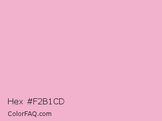 Hex #f2b1cd Color is a very light rose color and the nearest color is Nadeshiko Pink #f6adc6. Hex code #f2b1cd and RGB value is rgb(242,177,205). In RGB color space, this color is composed of 95% red, 69% green, 80% blue, In CMYK color space, this color is composed of 0% cyan, 27% magenta, 15% yellow , 5% black , In HSL color space, this color has a hue angle of 334° , 71% saturation and 82% lightness.