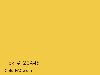 Hex #f2ca46 Color is a light yellow color and the nearest color is Ronchi #ecc54e. Hex code #f2ca46 and RGB value is rgb(242,202,70). In RGB color space, this color is composed of 95% red, 79% green, 27% blue, In CMYK color space, this color is composed of 0% cyan, 17% magenta, 71% yellow , 5% black , In HSL color space, this color has a hue angle of 46° , 87% saturation and 61% lightness.