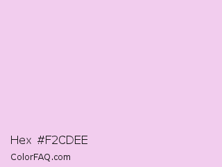 Hex #f2cdee Color is a very light magenta color and the nearest color is French Lilac #ecc7ee. Hex code #f2cdee and RGB value is rgb(242,205,238). In RGB color space, this color is composed of 95% red, 80% green, 93% blue, In CMYK color space, this color is composed of 0% cyan, 15% magenta, 2% yellow , 5% black , In HSL color space, this color has a hue angle of 306° , 59% saturation and 88% lightness.