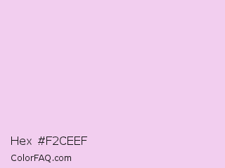 Hex #f2ceef Color is a very light magenta color and the nearest color is French Lilac #ecc7ee. Hex code #f2ceef and RGB value is rgb(242,206,239). In RGB color space, this color is composed of 95% red, 81% green, 94% blue, In CMYK color space, this color is composed of 0% cyan, 15% magenta, 1% yellow , 5% black , In HSL color space, this color has a hue angle of 305° , 58% saturation and 88% lightness.