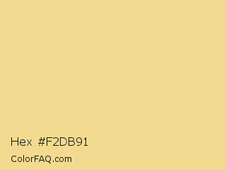 Hex #f2db91 Color is a light yellow color and the nearest color is Chalky #eed794. Hex code #f2db91 and RGB value is rgb(242,219,145). In RGB color space, this color is composed of 95% red, 86% green, 57% blue, In CMYK color space, this color is composed of 0% cyan, 10% magenta, 40% yellow , 5% black , In HSL color space, this color has a hue angle of 46° , 79% saturation and 76% lightness.