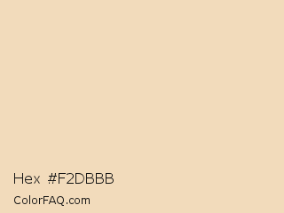 Hex #f2dbbb Color is a very light orange color and the nearest color is Dutch White #efdfbb. Hex code #f2dbbb and RGB value is rgb(242,219,187). In RGB color space, this color is composed of 95% red, 86% green, 73% blue, In CMYK color space, this color is composed of 0% cyan, 10% magenta, 23% yellow , 5% black , In HSL color space, this color has a hue angle of 35° , 68% saturation and 84% lightness.