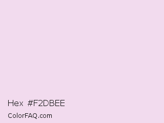 Hex #f2dbee Color is a very light magenta color and the nearest color is Prim #f0e2ec. Hex code #f2dbee and RGB value is rgb(242,219,238). In RGB color space, this color is composed of 95% red, 86% green, 93% blue, In CMYK color space, this color is composed of 0% cyan, 10% magenta, 2% yellow , 5% black , In HSL color space, this color has a hue angle of 310° , 47% saturation and 90% lightness.