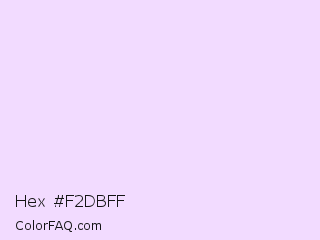 Hex #f2dbff Color is a very light purple color and the nearest color is Blue Chalk #f1e9ff. Hex code #f2dbff and RGB value is rgb(242,219,255). In RGB color space, this color is composed of 95% red, 86% green, 100% blue, In CMYK color space, this color is composed of 5% cyan, 14% magenta, 0% yellow , 0% black , In HSL color space, this color has a hue angle of 278° , 100% saturation and 93% lightness.