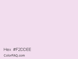 Hex #f2ddee Color is a very light magenta color and the nearest color is Prim #f0e2ec. Hex code #f2ddee and RGB value is rgb(242,221,238). In RGB color space, this color is composed of 95% red, 87% green, 93% blue, In CMYK color space, this color is composed of 0% cyan, 9% magenta, 2% yellow , 5% black , In HSL color space, this color has a hue angle of 311° , 45% saturation and 91% lightness.