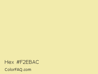 Hex #f2ebac Color is a very light yellow color and the nearest color is Pale Goldenrod #eee8aa. Hex code #f2ebac and RGB value is rgb(242,235,172). In RGB color space, this color is composed of 95% red, 92% green, 67% blue, In CMYK color space, this color is composed of 0% cyan, 3% magenta, 29% yellow , 5% black , In HSL color space, this color has a hue angle of 54° , 73% saturation and 81% lightness.