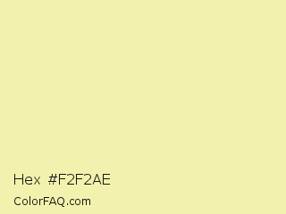 Hex #f2f2ae Color is a very light yellow color and the nearest color is Pale Goldenrod #eee8aa. Hex code #f2f2ae and RGB value is rgb(242,242,174). In RGB color space, this color is composed of 95% red, 95% green, 68% blue, In CMYK color space, this color is composed of 0% cyan, 0% magenta, 28% yellow , 5% black , In HSL color space, this color has a hue angle of 60° , 72% saturation and 82% lightness.