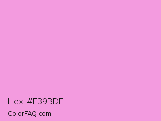 Hex #f39bdf Color is a light magenta color and the nearest color is Lavender Rose #fba0e3. Hex code #f39bdf and RGB value is rgb(243,155,223). In RGB color space, this color is composed of 95% red, 61% green, 87% blue, In CMYK color space, this color is composed of 0% cyan, 36% magenta, 8% yellow , 5% black , In HSL color space, this color has a hue angle of 314° , 79% saturation and 78% lightness.