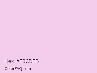 Hex #f3cdeb Color is a very light magenta color and the nearest color is Classic Rose #fbcce7. Hex code #f3cdeb and RGB value is rgb(243,205,235). In RGB color space, this color is composed of 95% red, 80% green, 92% blue, In CMYK color space, this color is composed of 0% cyan, 16% magenta, 3% yellow , 5% black , In HSL color space, this color has a hue angle of 313° , 61% saturation and 88% lightness.