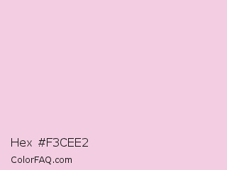 Hex #f3cee2 Color is a very light rose color and the nearest color is Classic Rose #fbcce7. Hex code #f3cee2 and RGB value is rgb(243,206,226). In RGB color space, this color is composed of 95% red, 81% green, 89% blue, In CMYK color space, this color is composed of 0% cyan, 15% magenta, 7% yellow , 5% black , In HSL color space, this color has a hue angle of 328° , 61% saturation and 88% lightness.