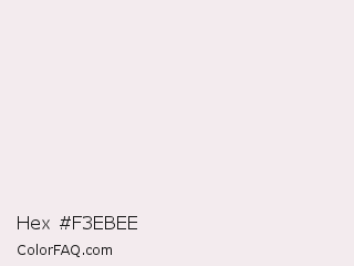 Hex #f3ebee Color is a very light rose color and the nearest color is Soft Peach #f5edef. Hex code #f3ebee and RGB value is rgb(243,235,238). In RGB color space, this color is composed of 95% red, 92% green, 93% blue, In CMYK color space, this color is composed of 0% cyan, 3% magenta, 2% yellow , 5% black , In HSL color space, this color has a hue angle of 338° , 25% saturation and 94% lightness.