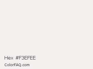 Hex #f3efee Color is a very light red color and the nearest color is Isabelline #f4f0ec. Hex code #f3efee and RGB value is rgb(243,239,238). In RGB color space, this color is composed of 95% red, 94% green, 93% blue, In CMYK color space, this color is composed of 0% cyan, 2% magenta, 2% yellow , 5% black , In HSL color space, this color has a hue angle of 12° , 17% saturation and 94% lightness.