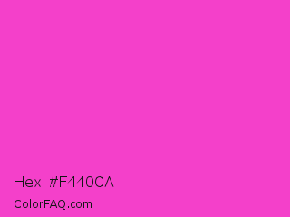 Hex #f440ca Color is a normal magenta color and the nearest color is Razzle Dazzle Rose #ff33cc. Hex code #f440ca and RGB value is rgb(244,64,202). In RGB color space, this color is composed of 96% red, 25% green, 79% blue, In CMYK color space, this color is composed of 0% cyan, 74% magenta, 17% yellow , 4% black , In HSL color space, this color has a hue angle of 314° , 89% saturation and 60% lightness.